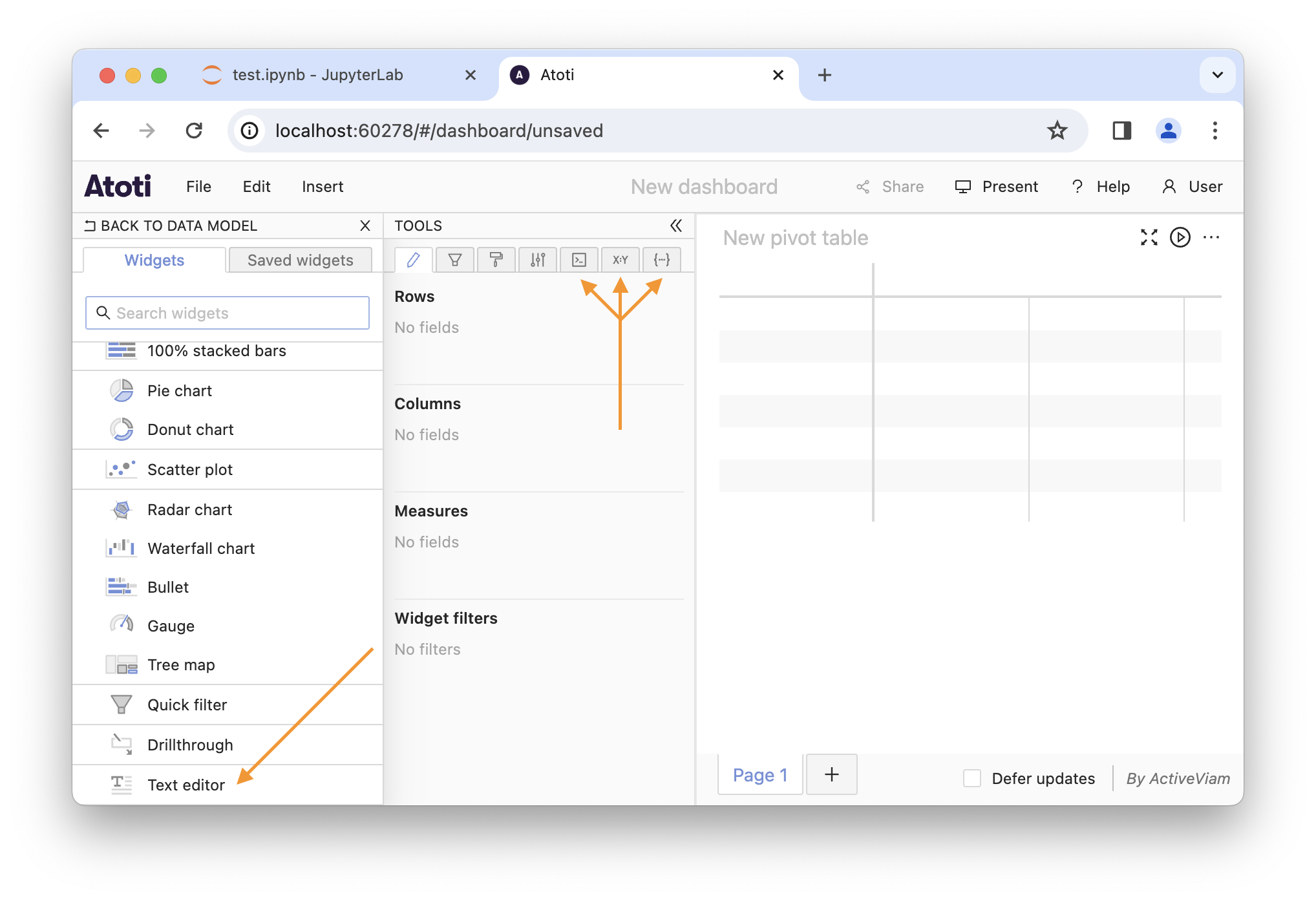 This extension will add some advanced tools and a Text editor widget: