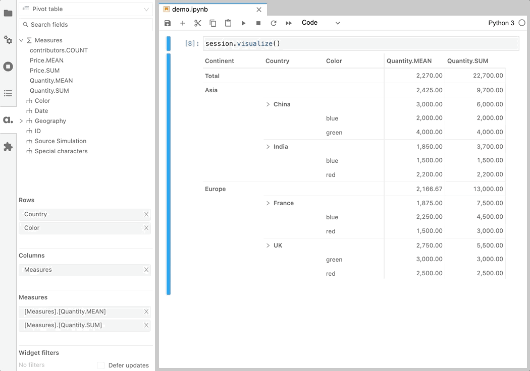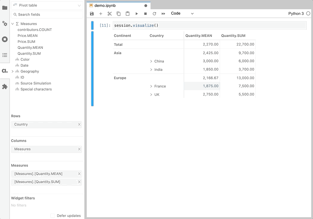 atoti.Session.query_mdx()andatoti_query.QuerySession.query_mdx.Query editor drawer in the app to manipulate the MDX query of the selected widget.