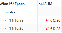 The previous snippet defines a Calculated Member corresponding to the rolling average of the pnl.SUM aggregated measure, with a centered 10 epoch-wide window: