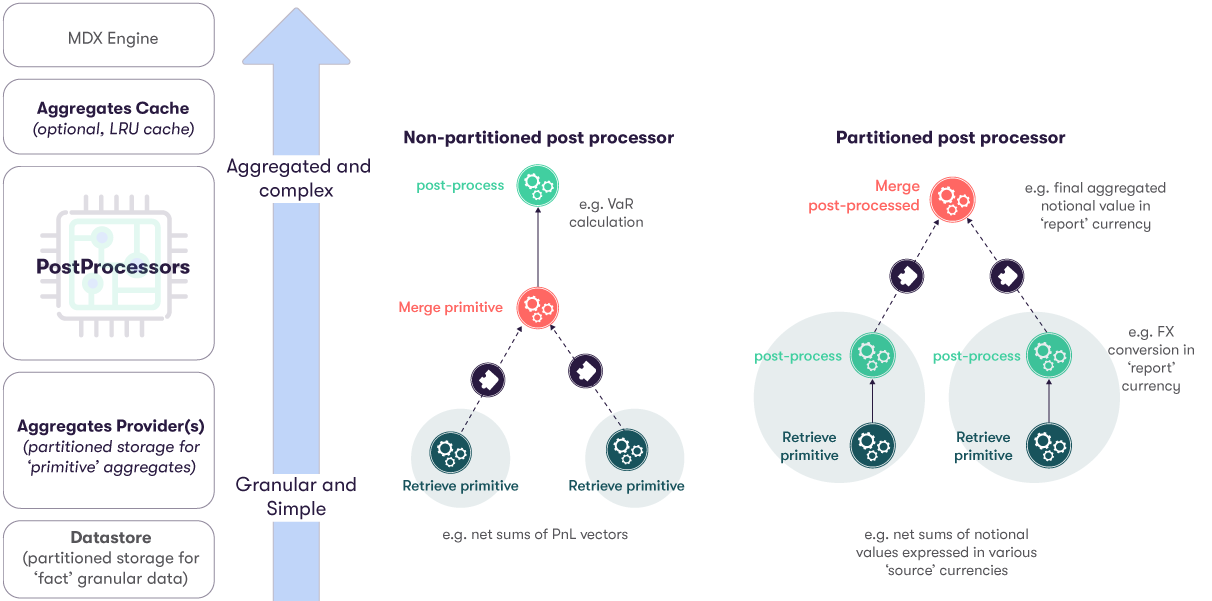 Consider the calculation of the Value at Risk (VaR) from a Finance use case. The post-processed measure is defined once with one PostProcessor. However, it can be used and queried from any hierarchy - from an AllMember aggregate level, all the way down to the individual Trade or fact level.