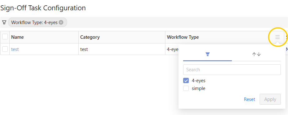 | Workflow Type | Name of the workflow the sign-off tasks created for this definition will follow. | 4-eyes |