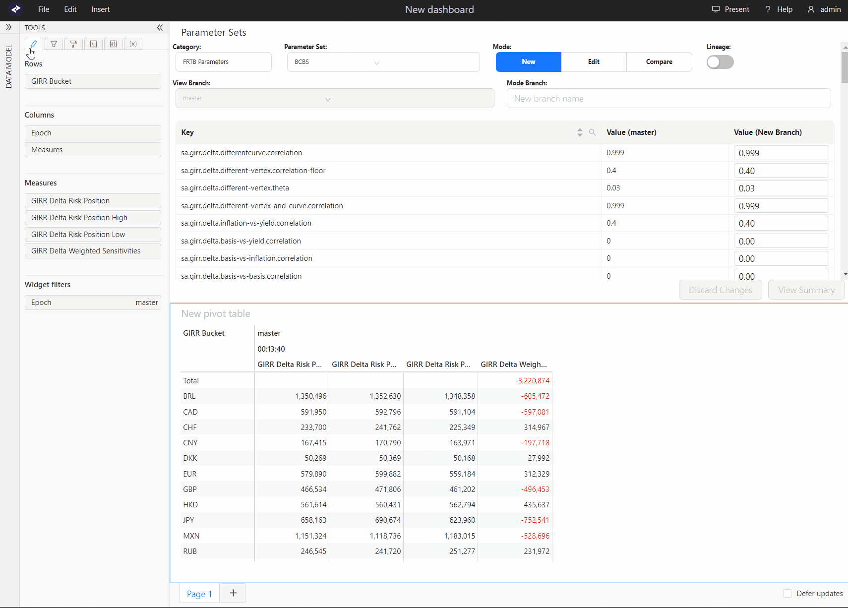 - Additional parameter sets from a customization. These parameter values are soft-coded in Atoti FRTB, which means that they can be overridden at query time without the need to rebuild or redeploy the application.